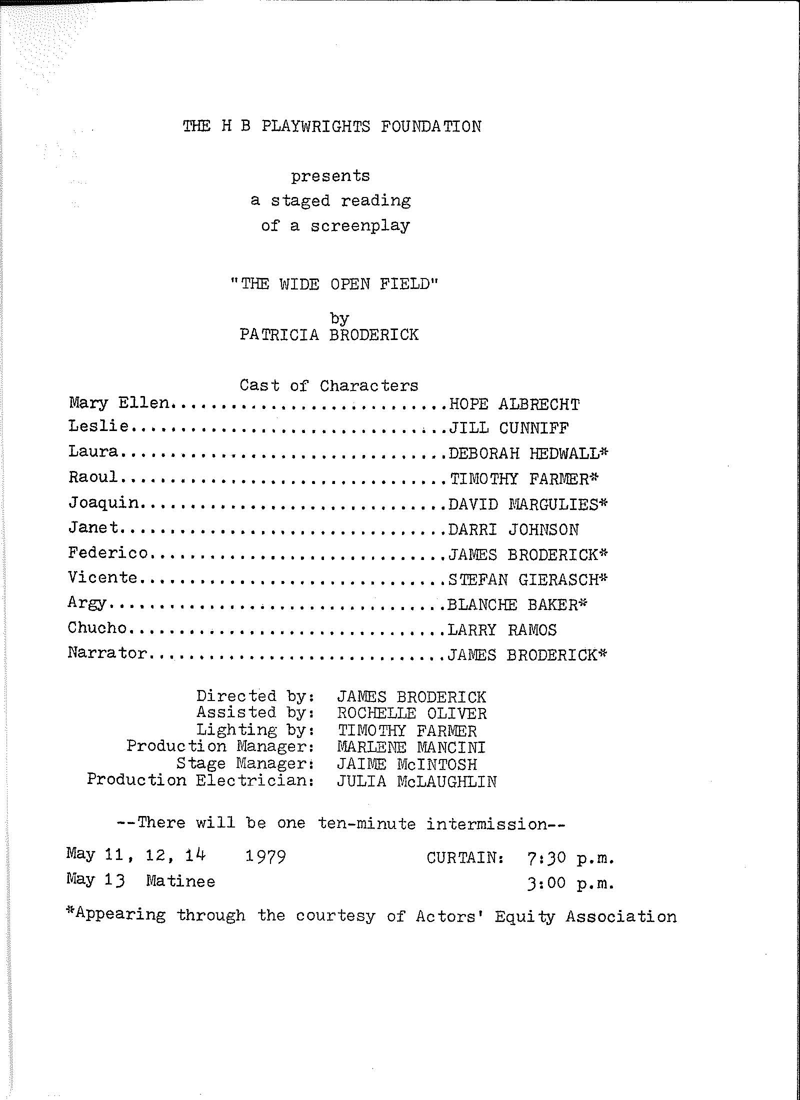 This play was performed May 11th – 14th of the year 1979.